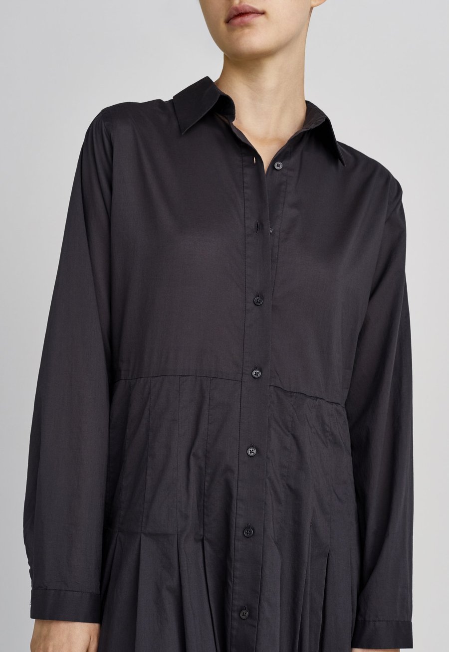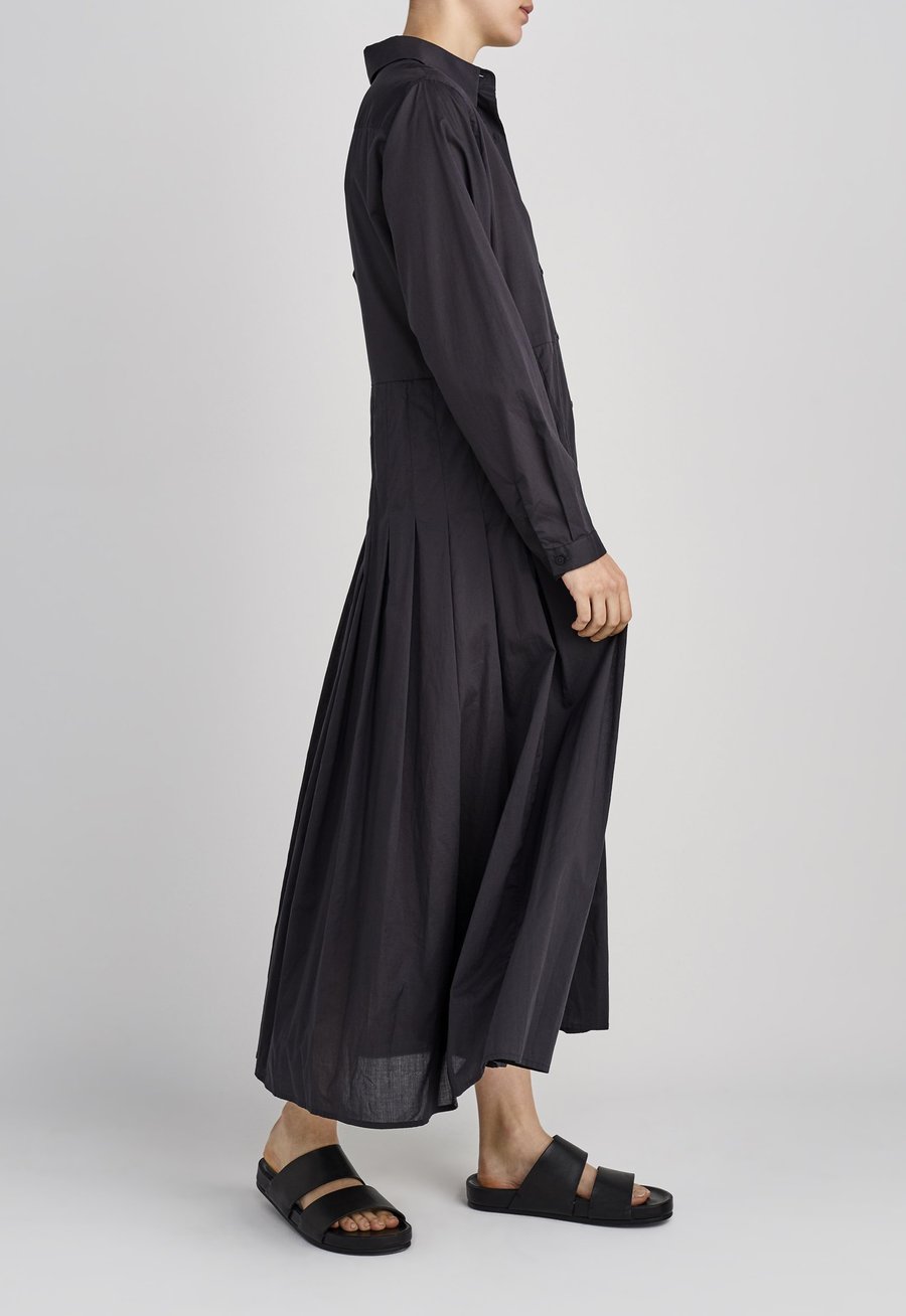 A new take on the shirtdress. Crafted from lightweight cotton voile this long sleeve dress is neat yet relaxed for a modern look. This button through style has stitched down pleats at the waist seam which fall to create a long, full skirt.