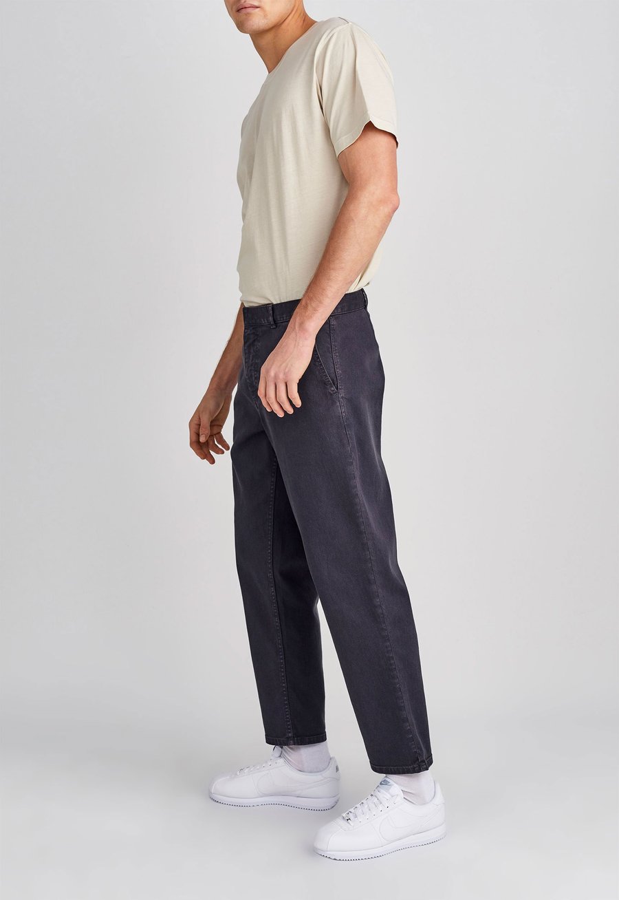 Our update on the everyday chino. Crafted from an Italian stretch cotton, these pants are cut relaxed and fall to a tapered leg that sits just above the ankle length. Details are considered and include slanted pockets and back welt pocket. A versatile option for work or weekend and can act as an alternative to denim jeans.