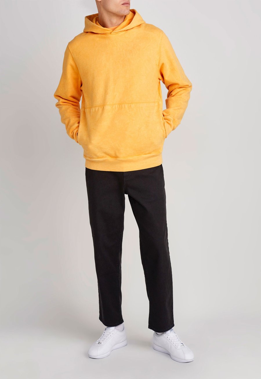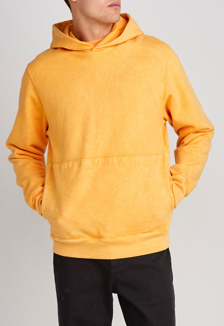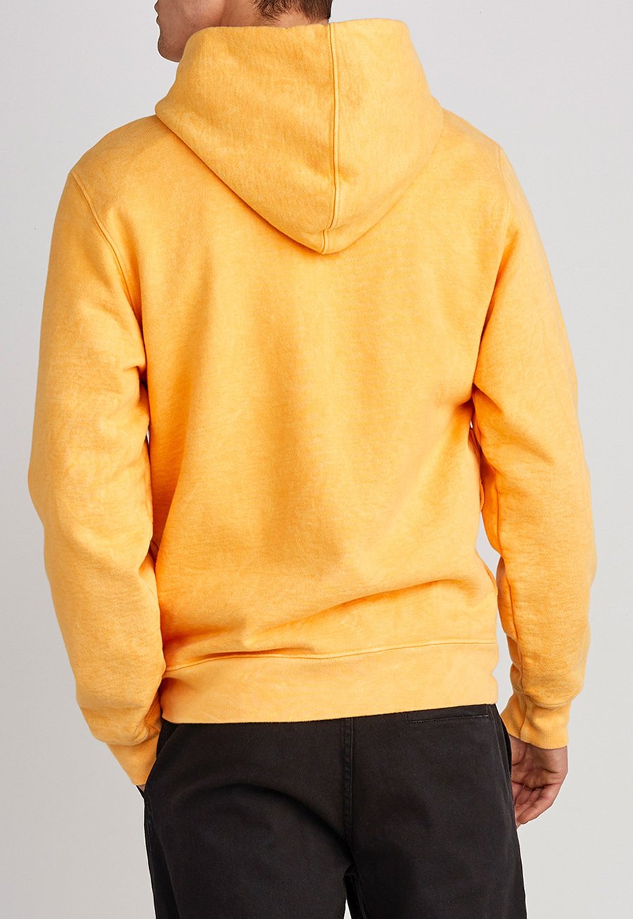 Crafted in the USA, this long sleeve hooded sweat is cut from an 100% loop back cotton fleece. The shape is a relaxed, regular fit with rib trims at the cuffs and hem. Side seam pockets update traditional kangaroo pocket detailing. This style has been garment over-dyed to give it a lived in, comfortable look. Ideal for layering over’s tee’s in either contrast or tonal combinations.